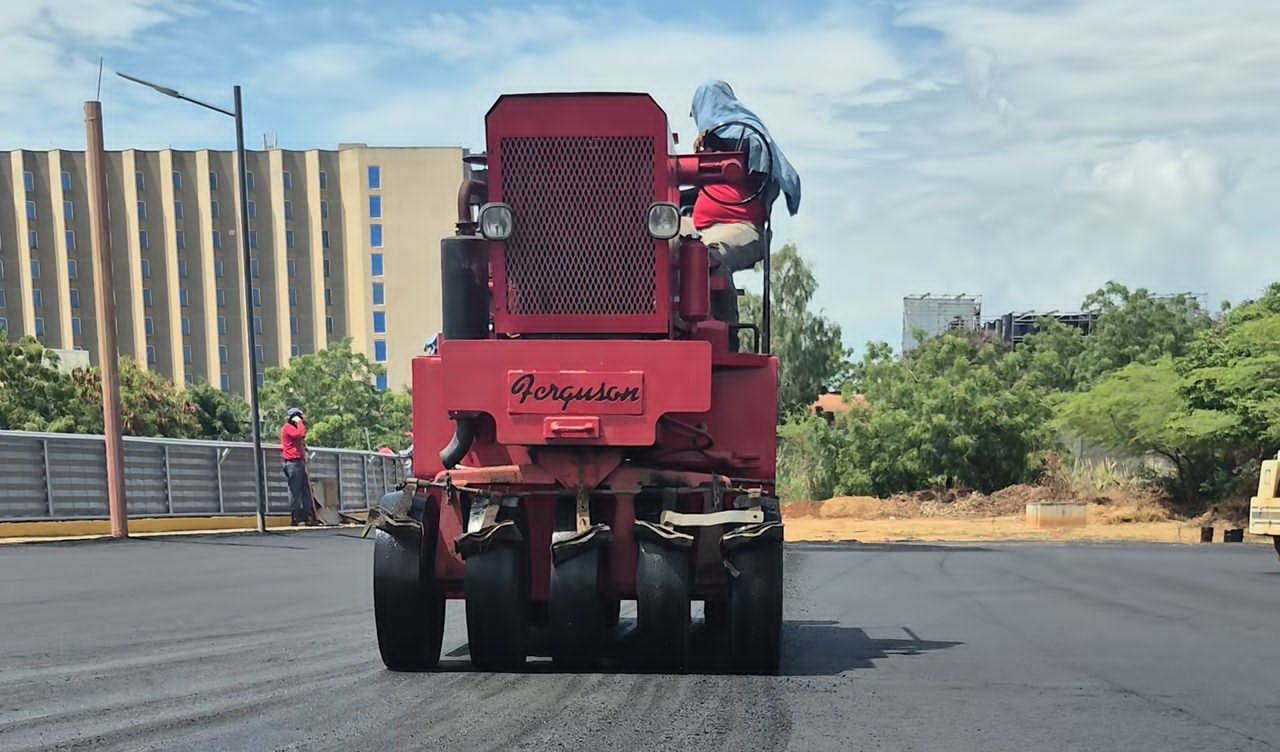 Ramírez especificó que los trabajos iniciaron con la rehabilitación de la pista principal, donde se colocaron 200 toneladas de asfalto en caliente tipo 3, mientras que en las áreas externas se ejecutaron otras 180 toneladas.