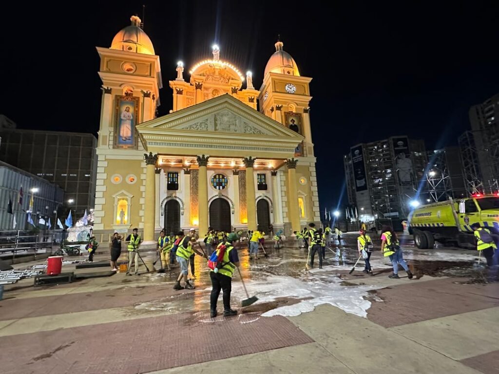 “Estuvimos trabajando en la noche ya para hacer el cierre definitivo del área de la plazoleta de Nuestra Señora de Chiquinquirá preparando todos los detalles en coordinación con el párroco rector Nedward Andrade y su equipo; hemos venido haciendo una intervención integral, ya están al 100 por ciento de funcionamiento los aires acondicionados de la Basílica, la iluminación y lo que corresponde al saneamiento ambiental”, informó Robles.