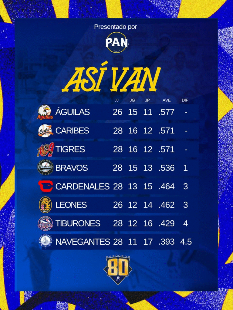 Con este triunfo, Caribes se une a Águilas del Zulia y Tigres de Aragua en el primer lugar, en un triple empate que hace más emocionante la temporada 2025-2026 de la LVBP.