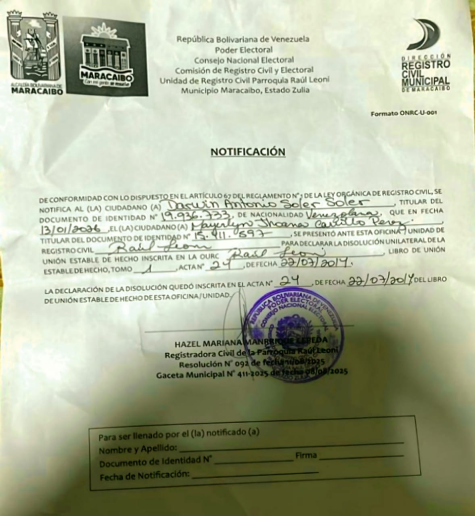 VARIEDADES CARTEL DE NOTIFICACIÓN – DIVORCIO JURISPRUDENCIA (DESAFECTO) – DARWIN ANTONIO SOLER SOLER Guillermo 11 de febrero de 2026 Navegación de entradasAnterior: ¡PANAMÁ SIGUE INVICTA! Magallanes vence a Colombia y pasa a semifinales de la Serie de las Américas Más historias ACTUALIDAD VARIEDADES ¡EXPANSIÓN Y CALIDAD! Crema Helados llega a 60 franquicias con nuevas aperturas en el Zulia Guillermo 20 de diciembre de 2025 ACTUALIDAD VARIEDADES ¡ORGULLO NACIONAL! Carlos Alberto Figueroa brilla con cinco nominaciones a los premios Emmy en EEUU Guillermo 28 de abril de 2025 REGIONALES VARIEDADES ¡LA MARCA CELEBRA CON UNA EDICIÓN ESPECIAL! Cerveza Zulia celebra 99 años siendo La Original Guillermo 5 de noviembre de 2024