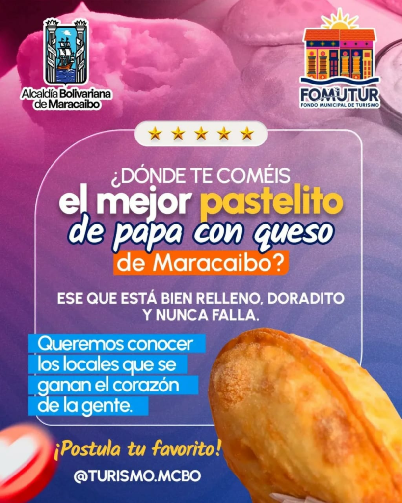 ENTRE TORMENTAS. Tostadito, bien relleno, con una mezcla equilibrada de ingredientes… ¿Cuál es el mejor pastelito de papa con queso que se come en la ciudad? Maracaibo lo sabrá pronto, gracias a un concurso que promueve la Alcaldía de Maracaibo, a través del Fondo municipal de Turismo (Fomotur).