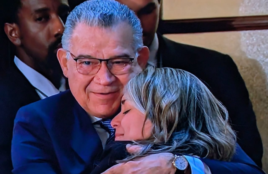 De acuerdo con lo expuesto en el discurso, el excandidato fue excarcelado cinco días después del derrocamiento de Maduro y asistió al Congreso, donde protagonizó un abrazo con su sobrina tras ser invitado por el propio presidente a ingresar al recinto. La escena fue recibida con aplausos por parte de los legisladores.