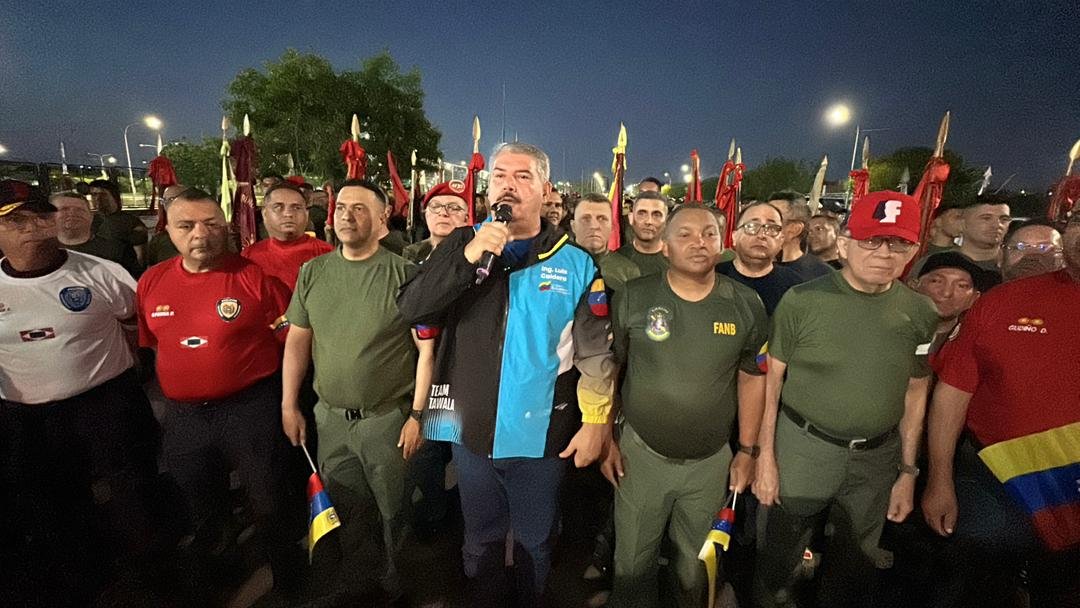 ENTRE TORMENTAS. El gobernador del Zulia, Luis Caldera, encabezó este miércoles, 4 de febrero, desde el Cuartel Libertador, el acto de conmemoración del Día de la Dignidad Nacional, en compañía del M/G Pedro Esteban González Ovalle; el general de brigada y coordinador del Fondo Nacional de Desarrollo Urbano (Fontur), Roger Hernández Hernández y demás autoridades regionales.