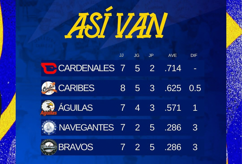LVBP: Magallanes logra segundo triunfo al frenar a Caribes y Lara recupera la cima al vencer a Bravos