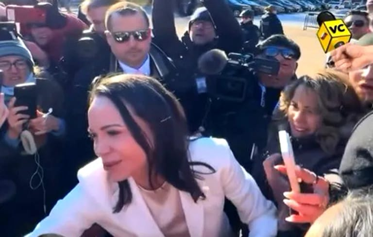 “Sepan que contamos con el presidente Trump para la liberación (de Venezuela)”, dijo ante las cámaras, entre abrazos y fotos con seguidores.