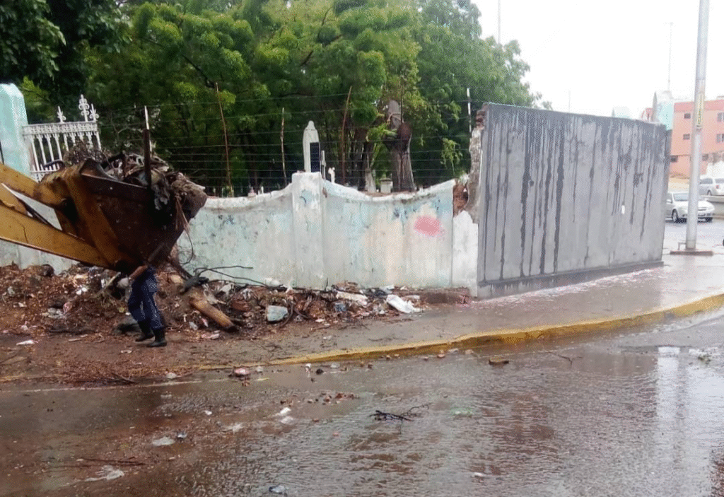ENTRE TORMENTAS. Con el objetivo de continuar garantizando espacios dignos y seguros para la memoria de los seres queridos de los marabinos, el alcalde de Maracaibo, Giancarlo Di Martino, a través del Servicio Desconcentrado de Cementerios Municipales (SEDECEMA), ejecuta trabajos de construcción de la pared lateral, ya que se encontraba deteriorada con peligro de desplome.