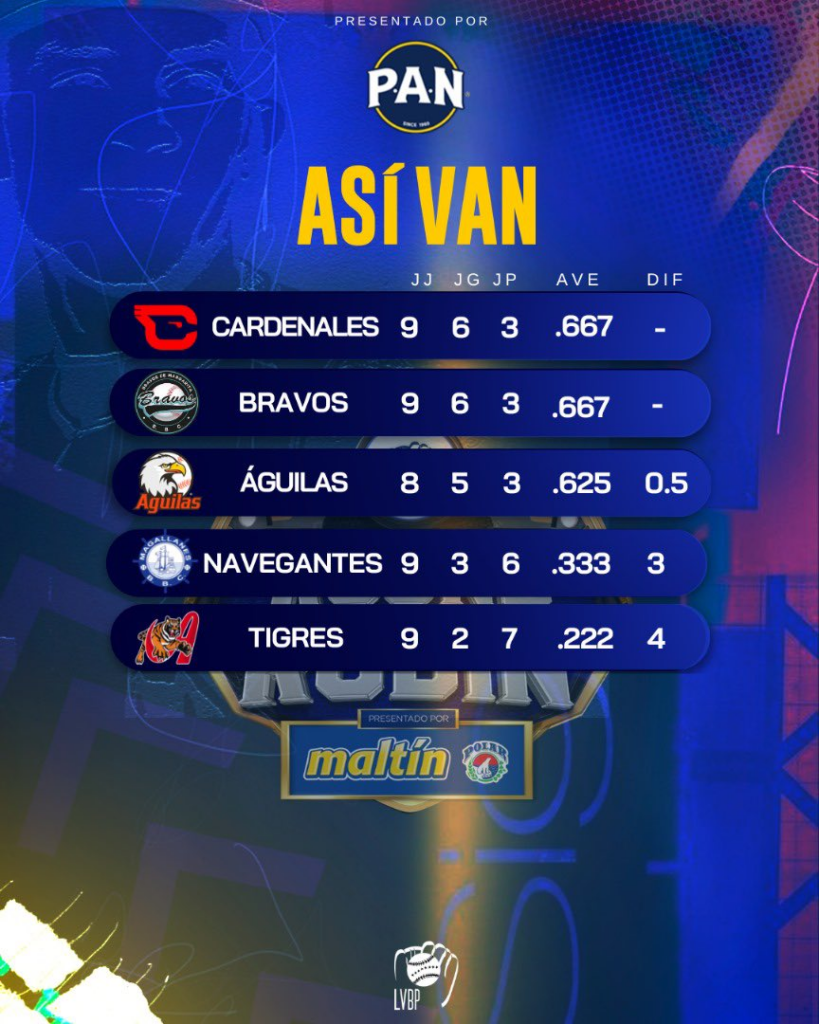 Magallanes (3-6), por su parte, regresará a Valencia para enfrentar a Águilas del Zulia jueves y viernes.